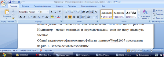 Рис. 3. Общий вид пользовательского интерфейса Office Word 2007