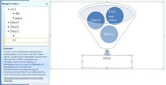 Для заполнения текстовых полей шаблона предназначена левая панель SmartArt-объекта (Рис. 22).