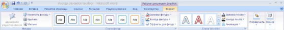 После вставки объекта WordArt в окне программы появляется контекстный инструмент «Работа с объектами WordArt».