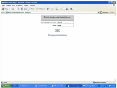 Рис.3.7 Вход в режим администрирования.