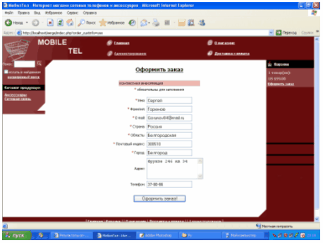 Рис.3.5 Оформление заказа.