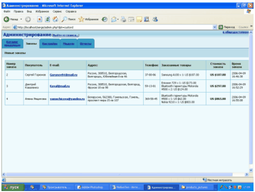 Рис.3.10. Администрирование – заказы.