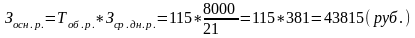Основная зарплата разработчика определена из расчета 8000 руб. в месяц при среднем количестве рабочих дней, равных 21: