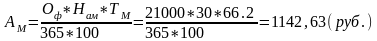 где АМ – амортизационные отчисления, руб.; Оф – стоимость ЭВМ и оборудования, руб.; Нам – норма амортизации, %; Тм – время использования оборудования, дни
