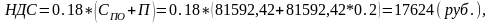 где Спо – себестоимость ПО, затраты на разработку по смете из таблицы 4.4; П – прибыль разработчика 20–30% к затратам; НДС – налог на добавленную стоимость 18%.