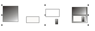 Щоб намалювати більш складний малюнок, застосовують декілька простих фігур. Наприклад, взявши прямокутник із закругленими краями і зафарбувавши його в чорний колір, додавши три білих прямокутника і ще один чорний, також із закругленими краями, отримаємо малюнок тридюймової дискети.
