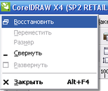 Системне меню основного вікна програми CorelDRAW викликається комбінацією клавіш ALT + ПРОБІЛ або клацанням по зображенню повітряної кулі в заголовку вікна.