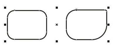 Перемістивши вузли на потрібну відстань, відпускаємо кнопку миші, кути прямокутника залишаться закругленими. Таким чином, легко отримуємо нову симетричну фігуру (Рис. 6.4, ліворуч).