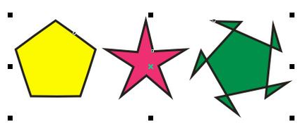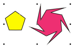 Це робиться точно так само, як і при їх створенні, про що було розказано вище. Є ще одна особливість зміни форми багатокутників. Можна додавати вузли в контур, що зараз і зробимо. Створюємо ще один п'ятикутник, після чого вибираємо інструмент "Shape Tool" в панелі Toolbox (Графіка).