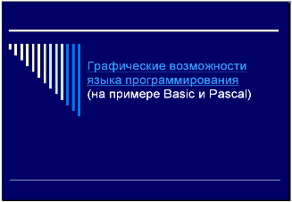 Создавая мультимедиа курс «Графические возможности языка программирования (на примере Basic и Pascal) » использовали основные возможности