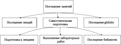 При построении этой модели всю предметную область, т.е. факторы, которые были получены в результате построения и анализа таблиц сопряженности, и от которых зависит результат сдачи сессии, разбили на три группы: успеваемость, посещение, личные факторы. При анализе предметной области были учтены как качественные так и количественные показатели . База знаний имеет четыре уровня ,а это значит что она также имеет промежуточные решения. Структура продукционной модели представлена ниже: