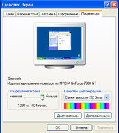Изменение разрешающей способности, размера шрифта и цветовой палитры. На вкладке Параметры окна свойств экрана устанавливаются параметры видеосистемы.