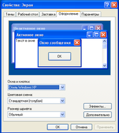 В списке Окна и кнопки находятся всего две позиции: Стиль Windows ХР и Классический стиль. Таким образом, этот список служит для переключения между указанными выше стилями. Следует заметить, что выбор классического стиля позволяет заметно увеличить быстродействие системы, поскольку выключаются почти все визуальные эффекты.