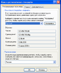 Первая вкладка данного диалогового окна, Региональные параметры, содержит две группы списков, первая из которых, Языковые стандарты и форматы, позволяет настроить вид отображения чисел, денежных единиц, времени и даты. Для установки параметров можно использовать уже заданные параметры, выбрав из списка требуемый элемент, который содержит их, либо настроить самостоятельно, для чего необходимо нажать на кнопку Настройка.