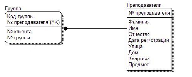 Связь таблиц “ГРУППА” и “ПРЕПОДАВАТЕЛИ”