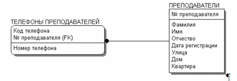 Рисунок 5 - Связь таблиц “ТЕЛЕФОНЫ ПРЕПОДАВАТЕЛЕЙ” и “ПРЕПОДАВАТЕЛИ”