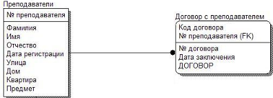 Рисунок 8 - Связь таблиц “ПРЕПОДАВАТЕЛИ” и “ДОГОВОР С ПРЕПОДАВАТЕЛЕМ”.