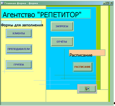 При запуске файла базы данных, первой открывается “Главная форма”, которая является кнопочной. Данная форма представлена на рисунке 23.