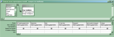 Рисунок 17 - Запрос “Список всех преподавателей” в режиме конструктора
