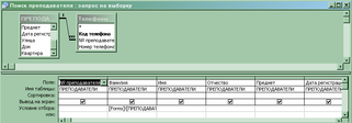 Рисунок 13 - Запрос “Поиск преподавателей” в режиме конструктора