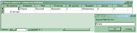 Рисунок 12 - Запрос “Поиск клиента” в режиме таблицы
