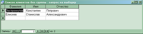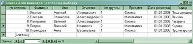 Рисунок 22- Запрос “Список клиентов без группы” в режиме таблицы