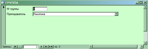 Форма ГРУППА нужна для записи информации о группе (рисунок 26).