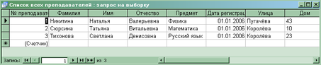 Рисунок 18 - Запрос “Список всех преподавателей” в режиме таблицы