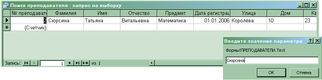 Рисунок 14 - Запрос “Поиск преподавателей”в режиме таблицы