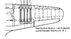 А вот другой вид ракетной системы, испытывавшийся на "Харрикейне", так и остался в опытных образцах. Речь идет об одном из первых снарядов класса "воздух-воздух". Правда, для "Харрикейна" оно не предназначалось, а лишь опробовалось на нем. Этими ракетами собирались отпугивать истребители немцев, осыпавшие сверху строй бомбардировщиков мелкими бомбами. Ракета выпускалась, как из миномета, из трубы, наклонно стоявшей за кабиной самолета. Вместо крупных бомб по 113 или 227 кг под крыльями истребителя можно было подвесить контейнеры для мелких бомб 5ВС. В гнезда этого контейнера обычно укладывали осколочные или учебные бомбы. Испытывали англичане и собственно противосамолетные бомбы. "Харрикейн" нес две такие бомбы по 113 кг. Взрыватель был фотоэлектрического типа и срабатывал от тени самолета-цели. При использовании традиционных типов бомб "Харрикейны" летали парами, а чаще четверками. Бомбили с пикирования, осуществляя сброс с высоты 1500-3000 м. Радиус действия с бомбами был около 240 км. Вместо бомб на бомбодержателях крепились дымовые приборы 5С1, по одному с каждой стороны фюзеляжа. " Харрикейны" - дымозавесчики использовались в ряде операций в Европе в 1943-1944 годах.