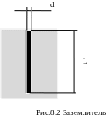 В начале определим сопротивление одиночного вертикального электрода. Предполагается использовать заземлитель стержневой круглого сечения или уголковый у поверхности земли (рис.8.2).