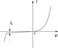 где I – ток через диод, V – приложенное напряжение; Is – обратный ток насыщения (функция температуры); k – постоянная Больцмана; q – величина заряда электрона.