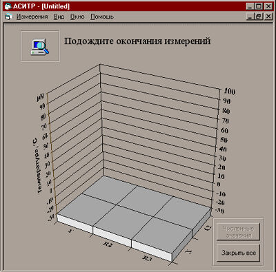 Следует отметить, что после задания режима измерения, отличного от «Немедленного» и нажатия кнопки «ОК», пользователю представляется форма, на которой кроме соответствующей надписи некоторые элементы сигнализируют о проведении эксперимента (анимационный элемент в левом верхнем углу экрана, кнопка «Численные значения» недоступна).