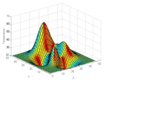 Более эффективные средства визуализации модели теплового поля исследуемого объекта представляет пакет «Matlab 5.2». На рисунке 5.2.7 показано представление теплового поля объекта средствами его функции «Surf».