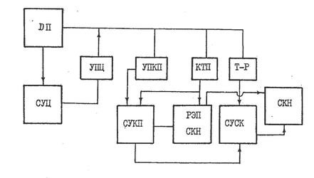 ДП - диспетчерский пункт, СУЦ - станция управления центральная, УПЦ, УПКП - устройства присоединения, КТП, Т-Р - комплектная трансформаторная подстанция, трансформатор, СУКП - станция управления контролируемого пункта, СУ СК - станция управления и защиты СКН при работе без РЭП СКН.