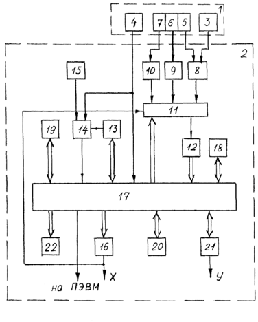 Режим работы устройства выбирают с помощью клавиатуры 18. Запись информации о техническом состоянии ШГНУ производят в течение одного или кратного количества циклов работы установки. Рабочий цикл определяют по интервалу времени между двумя "мертвыми" точками положения балансира ШГНУ.