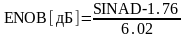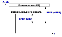 Показатель сигнал/шум/искажения (SINAD или S/N+D) - отношение среднеквадратичного значения амплитуды сигнала к среднему значению корня из суммы квадратов всех других спектральных компонентов, включая гармоники.