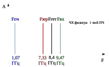 При втором преобразовании частоты, сигнал переносится на более низкую промежуточную частоту (Fпч2 = 1070 МГц). Частота зеркального канала (Fзерк2 = 7,33 ГГц) подавляется полосовым фильтром первой промежуточной частоты (см. рисунок 5.4).