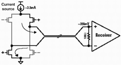 LVDS (Low Voltage Differential Signaling) означает передачу цифровых данных дифференциальными сигналами. Это направление передачи данных использует очень малые перепады дифференциального напряжения (до 350 мВ) на двух линиях печатной платы. Дифференциальный метод передачи используется в LVDS, поскольку обладает меньшей чувствительностью к общим помехам, чем простая однопроводная схема. Достоинством дифференциального метода является то, что шумы, наводящиеся на двухпроводной линии, симметричны и не нарушают дифференциального сигнала