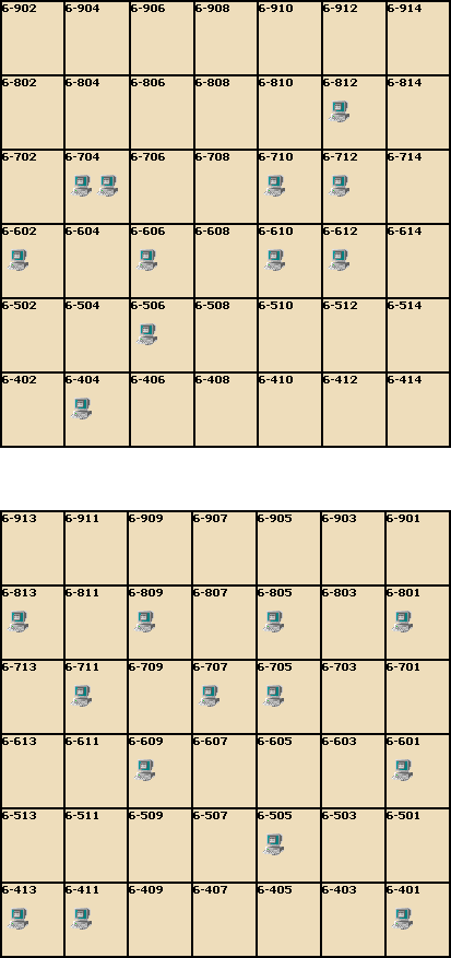На рисунках ниже обозначены все рабочие станции, подключенные к ЛВС студенческого городка МИЭТ на май 2001 года во всех корпусах студгородка.