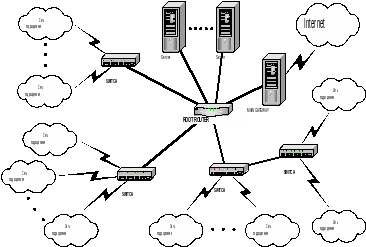 На рисунке 10 изображена схема типичной сети структурного подразделения МИЭТ и ее основные элементы: