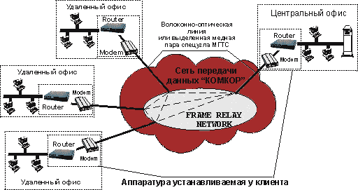 В данном варианте предполагается аренда у компании КОМКОР (www.comcor.ru) двух портов сети передачи данных и организация между ними виртуального канала.