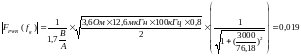 де: RL=3,6Ом – вихідний індуктивний опір, LP=12,6мкГн – індуктивність первинної обмотки трансформатора, fg=3000Гц – частота на якій проводиться розрахунок, f0=76,18 – гранична частота при максимальному навантаженні .