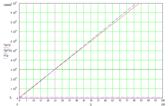 Обсяг продукції при якому прибуток відсутній -
