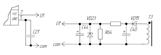 Імпульсний стабілізатор напруги побудуємо по однотактній підвищуючій схемі без гальванічної розвязки - rising transducer.