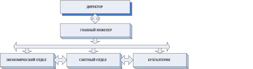 Рисунок 2.1 – Схема взаимодействия отделов АОЗТ «Донецкое пуско-наладочное управление № 414 «Донебасэлектромонтаж »
