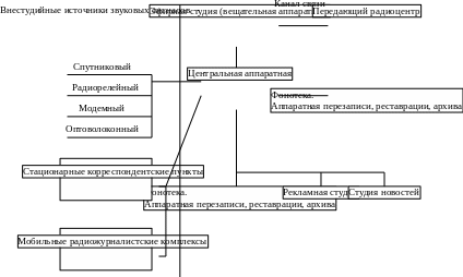 исунок 1.2 - Укрупненная структурная схема коммерческой радиостанции с указанием внестудийных источников звуковых сигналов.