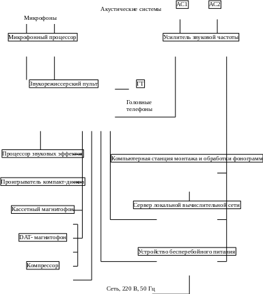 На рисунке 1.3 приведены примерный состав оборудования студии радиостанции и взаимосвязи между ним.