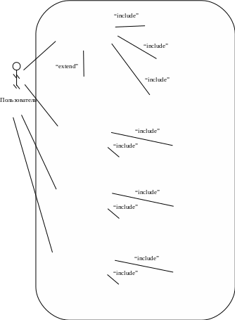 Суть данной диаграммы состоит в следующем: проектируемая система представляется в виде множества сущностей или актеров, взаимодействующих с системой с помощью так называемых вариантов использования. При этом актером или действующим лицом называется любая сущность, взаимодействующая с системой извне. Это может быть человек, техническое устройство, программа или любая другая система, которая может служить источником воздействия на моделируемую систему так, как определит сам разработчик. В свою очередь, вариант использования служит для описания сервисов, которые система предоставляет актеру. При этом ничего не говорится о том, каким образом будет реализовано взаимодействие актеров с системой.