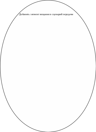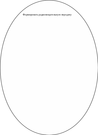 | Формировать радиовещательную передачу | Прецедент включает в себя прецеденты Проверить формат хранения элемента вещания, Определить необходимость и порядок обработки элемента, Добавить элемент вещания в сценарий передачи. После проверки соответствия элемента вещания требованиям передачи он добавляется в формируемую передачу. или иному расширяющему прецеденту. |